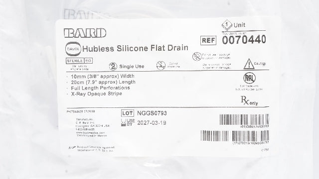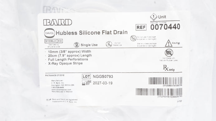- Bard 0070440 Davol Hubless Silicone Flat Drain 3/8inch x 7.9inch