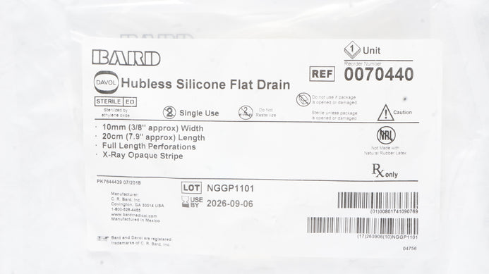 - Bard 0070440 Davol Hubless Silicone Flat Drain 3/8inch x 7.9inch