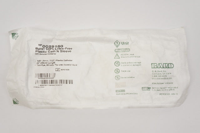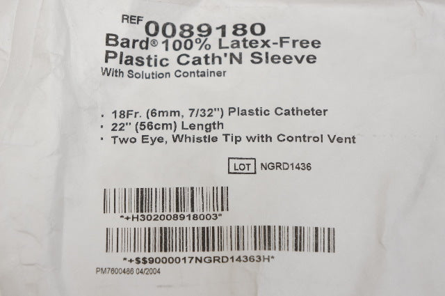- Bard 0089180 100% Latex-Free Plastic Cath'N Sleeve With Solution Container 18Fr
