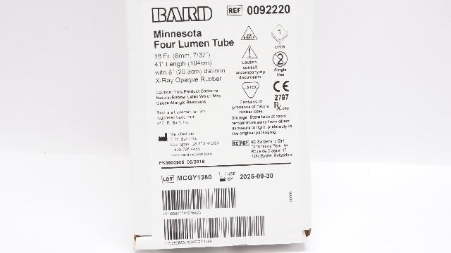 - Bard 0092220 Minnesota Four Lumen Tube 18Fr x 41inch x 8inch