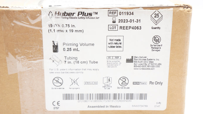 Bard 011934 Huber Plus Ndle Safety Infusion Set 19G x 0.75inch (x) - Box of 25