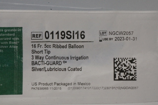 - Bard 0119SI16 Bardex I.C. Anti-Infective Foley Cath. 16 Fr 5cc Ribbed Balloon