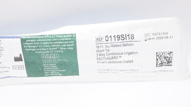 - Bard 0119SI18 Bardex Anti-Infective Foley Cath. 18Fr 5cc Ribbed Ballon