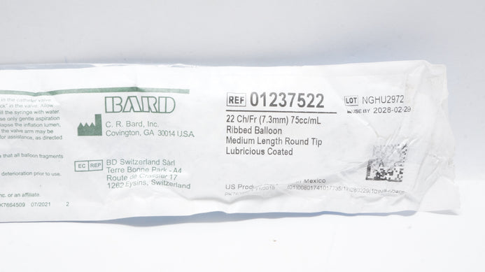 - Bard 01237522 Bardex Foley Cath. 22Ch/Fr Ribbed Balloon 75cc/mL