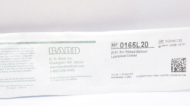 - Bard 0165L20 Bardex Foley Cath. Ribbed Balloon Lubricious Coated, 20 Fr. 5cc