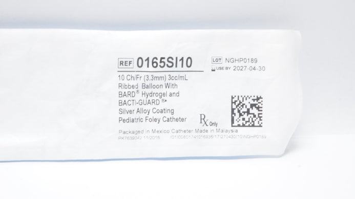 Bard 0165SI10 Bardex I.C. Anti-infective Pediatric Foley Catheter 10Ch/Fr 3cc/ml Ribbed Balloon With Bard Hydrogel and Bacti-Guard Silver Alloy Coating