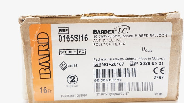 - Bard 0165SI16 Bardex IC Anti-Infective Foley Cath. 16Ch/Fr Ribbed Ball -Box of 7