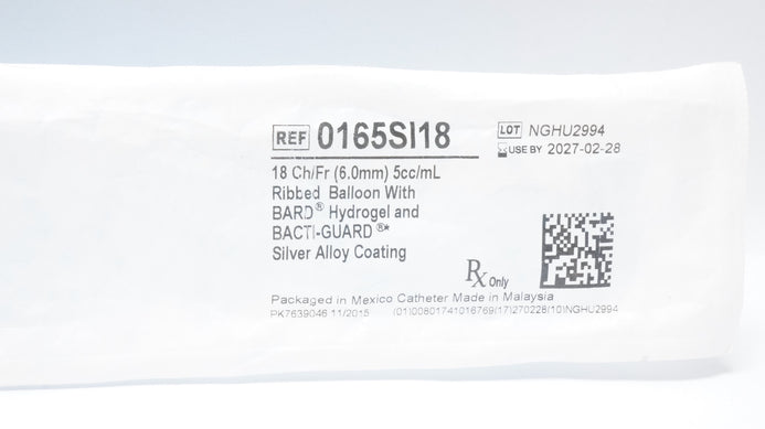 Bard 0165SI18 Bardex I.C. Anti-Infective Foley Catheter 18Ch/Fr 5cc/mL Ribbed Balloon With Bard HydrBacti-Guard Silver Alloy Coating