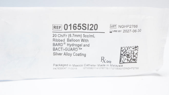 Bard 0165SI20 Bardex I.C. Aniti-Infective Foley Catheter 20Ch/Fr 5cc/mL Ribbed Balloon With Hydrogel and Bacti-Guard Silver Alloy Coating