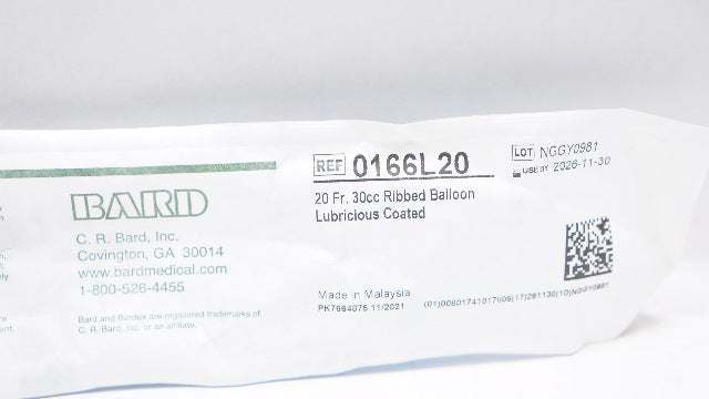 - Bard 0166L20 Bardex Foley Cath. 20Fr 30cc Ribbed Balloon