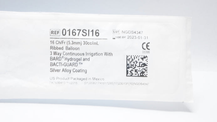 Bard 0167SI16 Bardex I.C. Anti-Infesctive Foley Catheter 16Ch/Fr x 30cc/mL Ribbed Balloon 3 way Continuous Irrigation With Hydrogel and Bacti-Guard Silver Alloy Coating