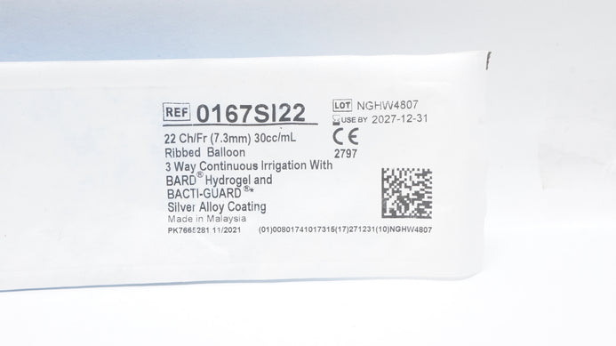 - Bard 0167SI22 Bardex Anti-Infectie Foley Cath. 22Ch/Fr 30cc/mL Ribbed Balloon