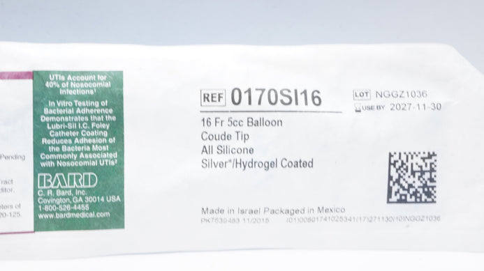 - Bard 0170SI16 Lubri-Sil I.C. Anti-Microbial Foley Cath. 16Fr x 5cc Balloon