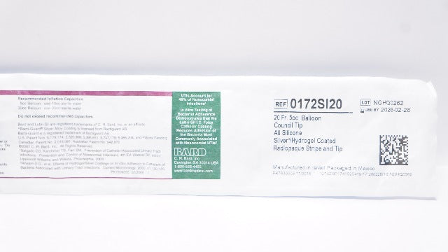 - Bard 0172SI20 Lubri-Sil I.C. Anti-Microbial Foley Cath. 20Fr 5cc Balloon