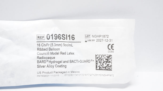 - Bard 0196SI16 Bardex I.C. Anti-Infective Foley Cath. 16 Ch/Fr 5cc/mL Balloon
