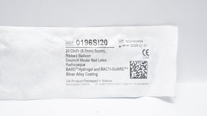 Bard 0196SI20 Bardex I.C. Aniti-Infective Foley Catheter with Bard Hydrogel and Bacti-Guard Silver Alloy Coating 20Ch/Fr x 5cc/mL Ribbed Balloon Councill Model Red Latex Radiopaque