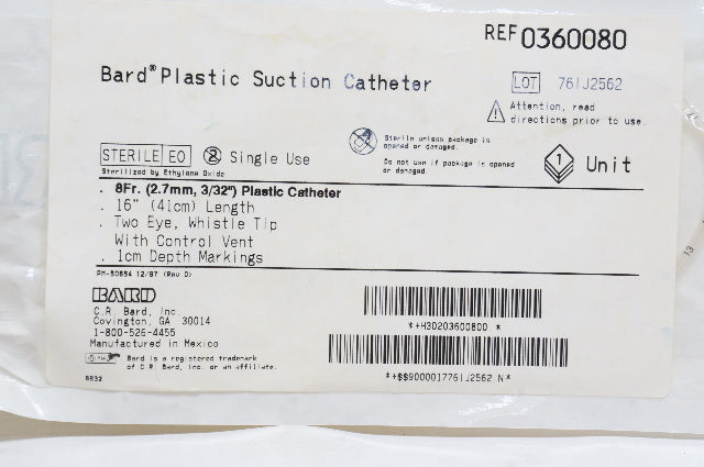 Bard 0360080 Plastic Suction Cath. 8Fr. x 16inch