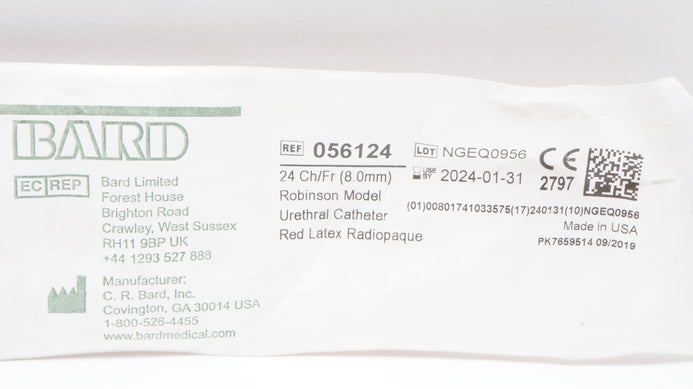 - Bard 056124 Urethral Cath. Robinson Model 24Ch/Fr (x)