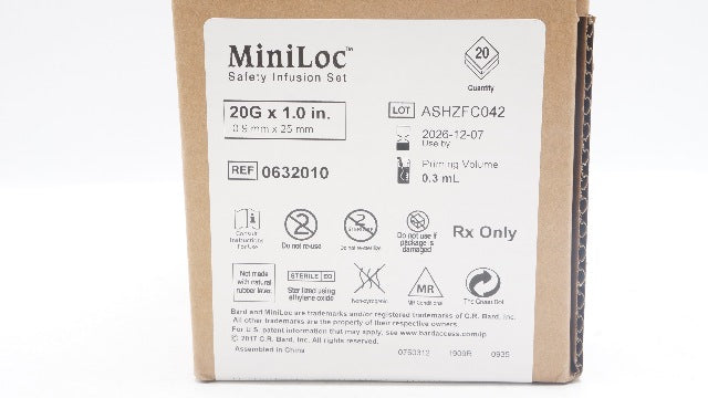 - Bard 0632010 MiniLoc Safety Infusion Set 20G x 1.0 inch 0.3mL - Box of 20