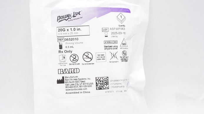 - Bard 0652010 Power Loc Safety Infusion Set 20G x 1.0 inch, Priming Volume 0.3mL