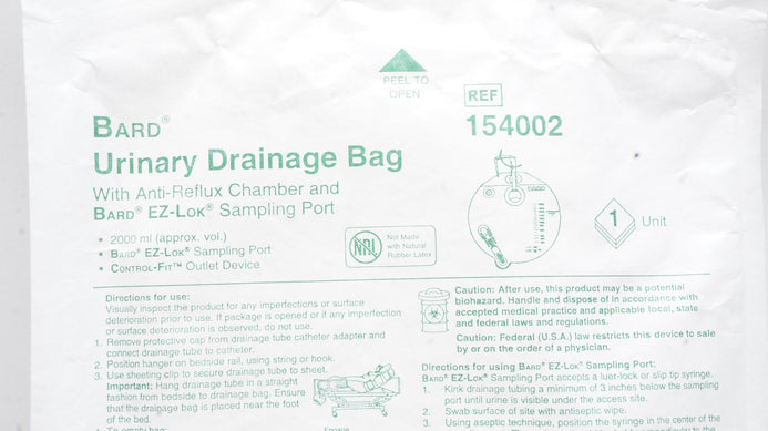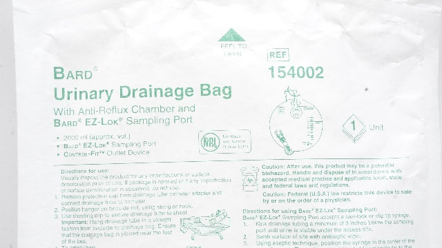 - Bard 154002 Urinary Drainage Bag with Anti-Reflux Chamber & Sampling Port 2000ml