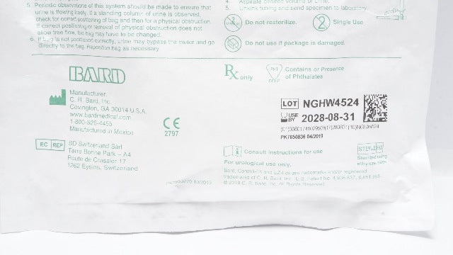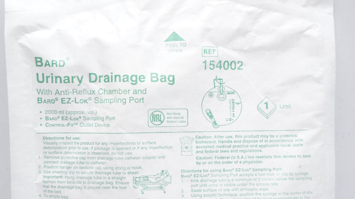 - Bard 154002 Urinary Drainage Bag with Anti-Reflux Chamber & Sampling Port 2000ml