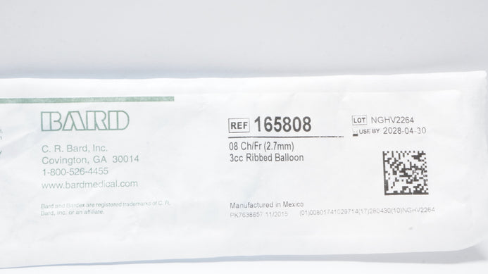- Bard 165808 Bardex All-Silicone Foley Cath. Ribbed Balloon 08Fr 3cc