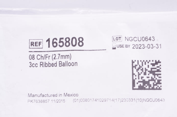 - Bard 165808 Bardex All-Silicone Foley Cath. 08Ch/Fr 3cc Ribbed Balloon