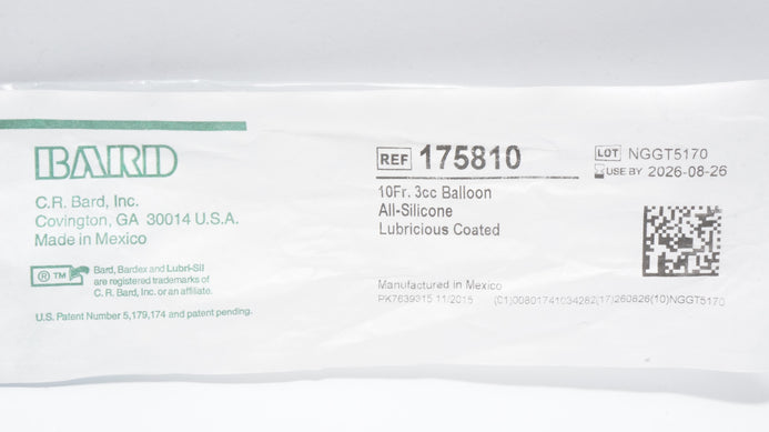 - Bard 175810 Lubri-Sil All-Silicone Foley Cath. 10Fr. 3cc Balloon