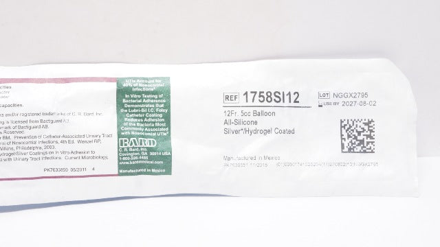 - Bard 1758SI12 Lubri-Sil I.C. Anti-Microbial All-Silicone Foley Cath. 12Fr 5cc