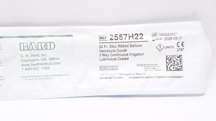 - Bard 2557H22 Bardex Foley Cath. 22Fr 30cc Ribbed Balloon Hematuria Coude