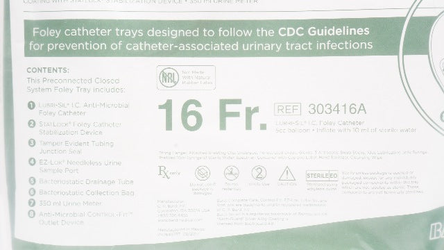 - Bard 303416A Lubri-Sil Infection Control Foley Cath. Tray 16Fr.