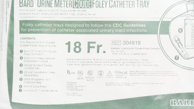 - Bard 304918 Urine Meter Coude Foley Cath. Tray 18Fr.