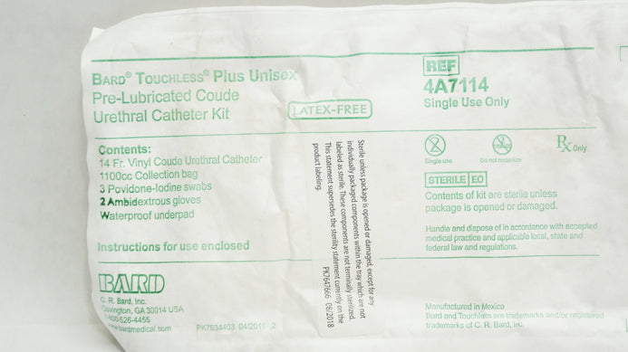 - Bard 4A7114 Touchless Plus Unisex Pre-Lubricated Coude Urethral Cath. Kit 14Fr(x)