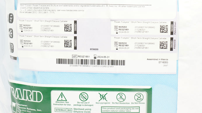 - Bard 5605200 Power-Trialysis Straight Dialysis Cath. Tray 13F x 20cm(x)