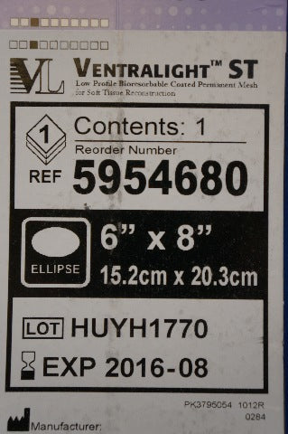- Bard 5954680 Ventralight Low Profile Bioresorbable Coated Permanent Mesh 6 (x)