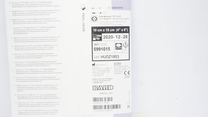 - Bard 5991015 Davol Ventralight ST Mesh W/Echo 2 Positioning System 4 x 6inch (x)
