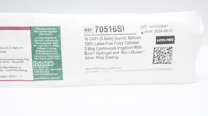 - Bard 70516SI Lubri-Sil Infection Control 5cc Balloon 3-Way F Cath. 16Ch/Fr (x)