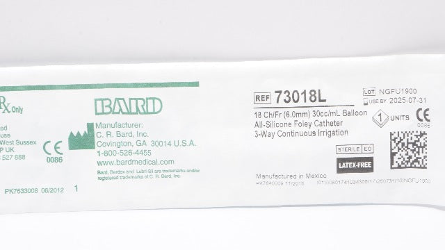 Bard 73018L Lubri-Sil All-Silicone Foley Catheter 18Ch/Fr 30cc/mL Balloon, 3-Way Continuous Irrigation