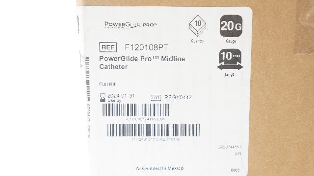 - Bard F120108PT PowerGlide Pro Midline Cath. 20G x 10cm (x) - Box of 10