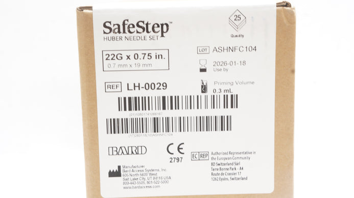 - Bard LH-0029 SafeStep Huber Ndle Set 22G x 0.75inch Prim. Vol. 0.3mL - Box of 25