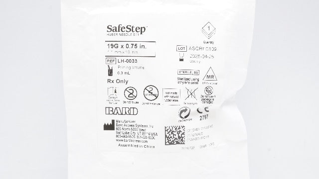 - Bard LH-0033 SafeStep Huber Ndle Set 19G x 0.75 inch Priming Volume 0.3mL