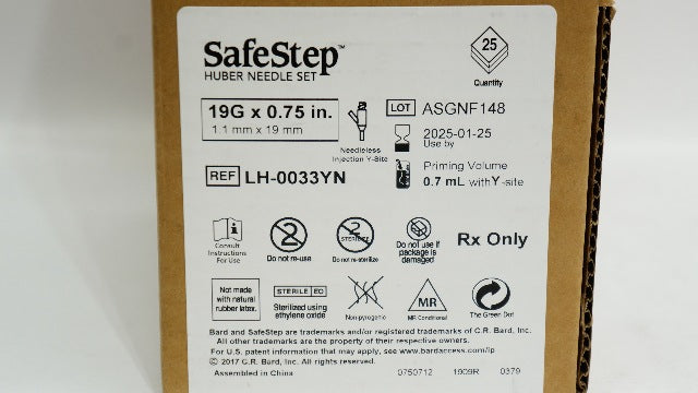 - Bard LH-0033YN SafeStep Huber Ndle Set 19G x 0.75 inch, 0.7mL - Box of 25