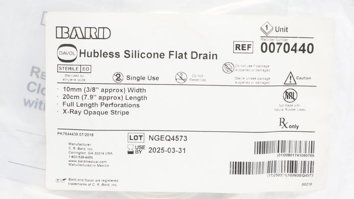 - Bard V0070440 Novaplus Hubless Silicone Flat Drain 3/8in. x 7.9in. (approx.) (x)