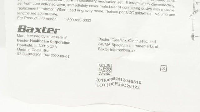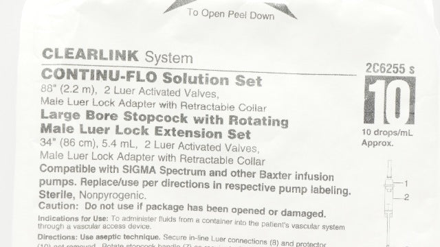 - Baxter 2C6255s Clearlink System Continu-Flo Solution Set 88inch 10 drops/mL Appx
