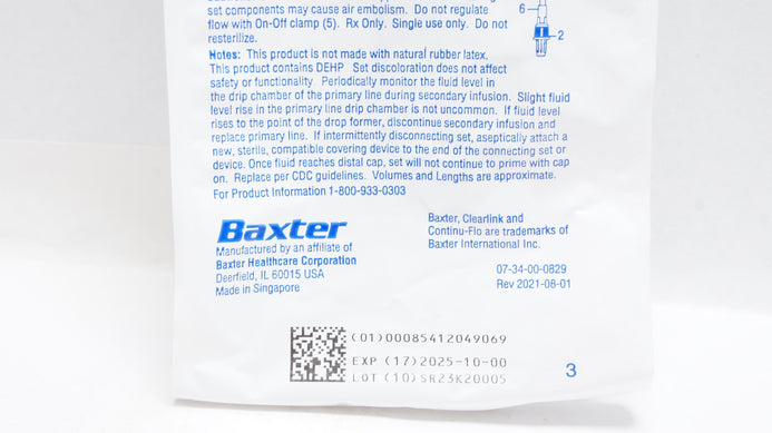 Baxter 2C7461 Clearlink Secondary Medication Set 37inch x 6.7mLHanger 10drops/ml