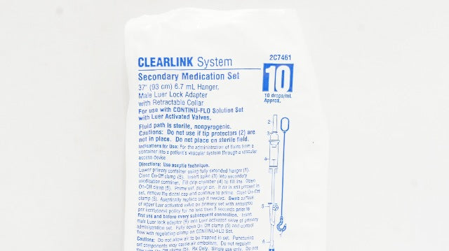 Baxter 2C7461 Clearlink Secondary Medication Set 37inch x 6.7mLHanger 10drops/ml