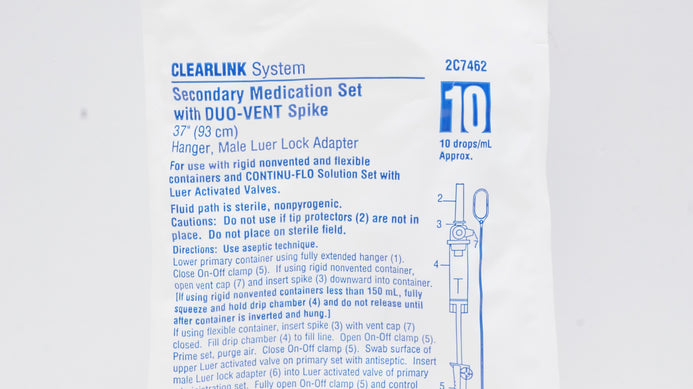 Baxter 2C7462 Clearlink System Secondary Medication Set With Duo-Vent Spike 37inch Hanger, Male Luer Lock Adapter 10Drops/mL