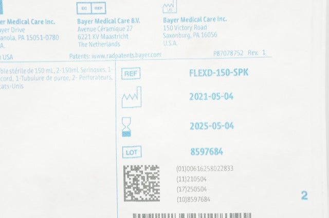 - Bayer FLEXD-150-SPK Medrad Stellant Flex Sterile Disposable Syringes 150ml