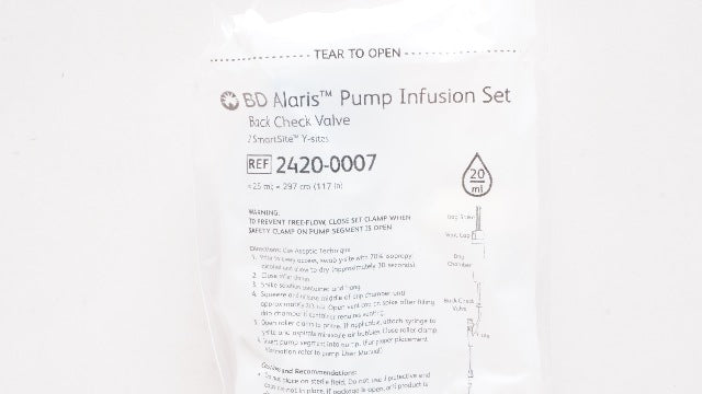 - BD 2420-0007 Pump Infusion Set Back Check Valve 117inch x 25ml 20Drops/ml